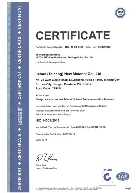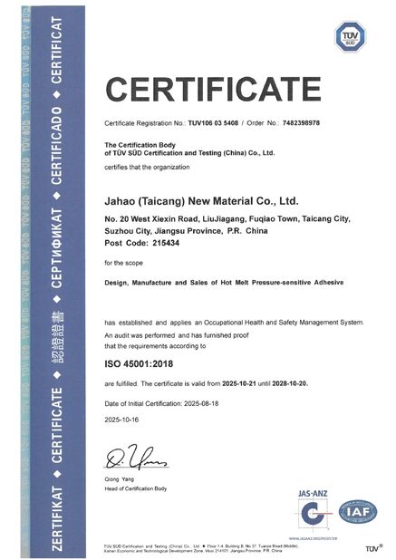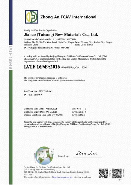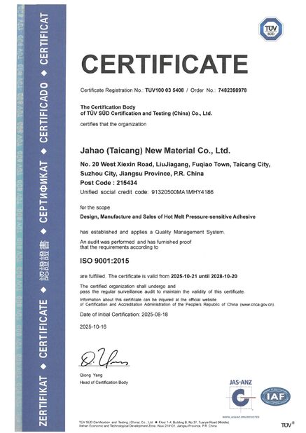 • ΚΙΝΑ Shanghai Jaour Adhesive Products Co.,Ltd Πιστοποιητικά